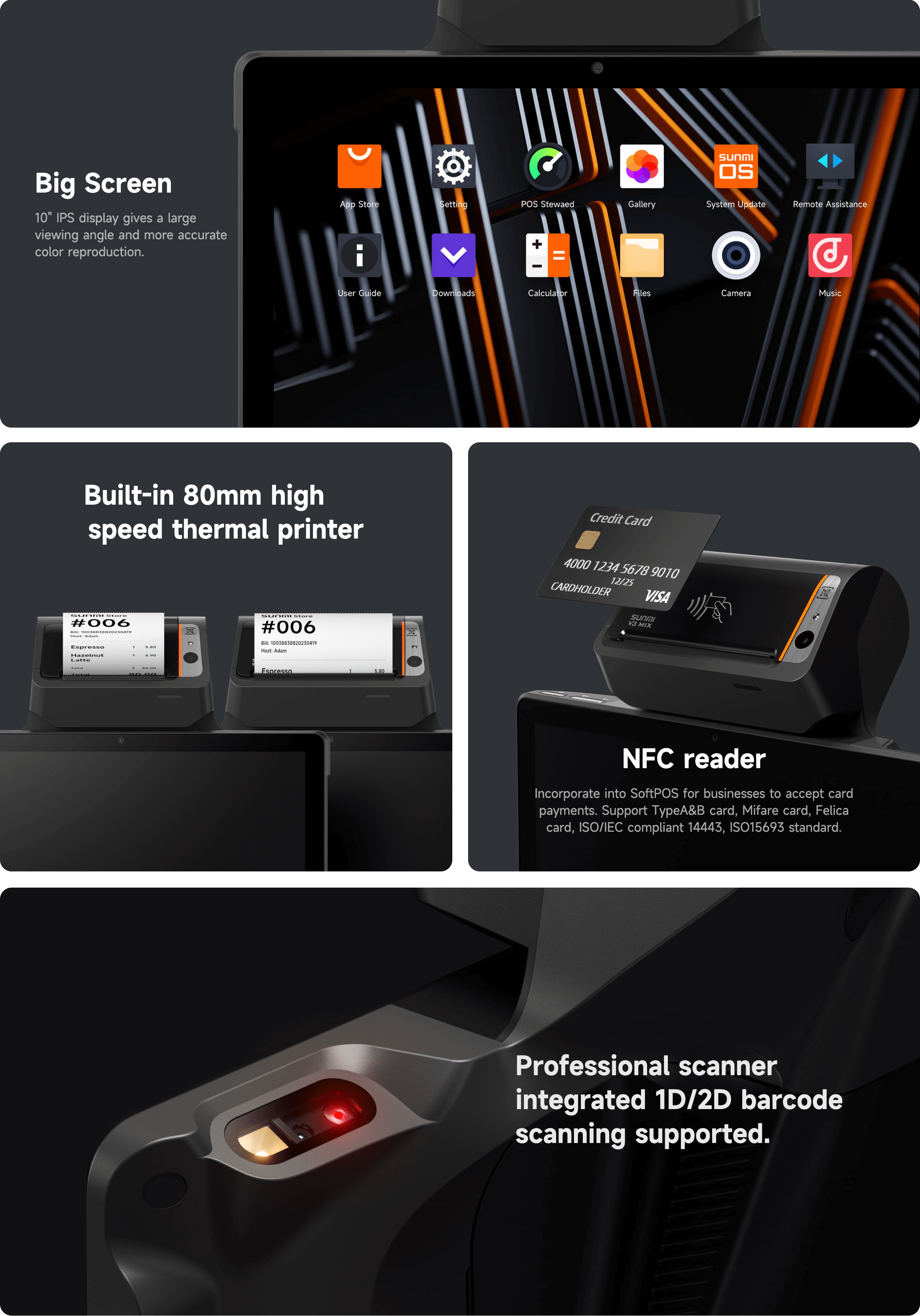 Peripheral: 0.3M Front Camera, NFC, 80mm Printer, GMS-EDLA