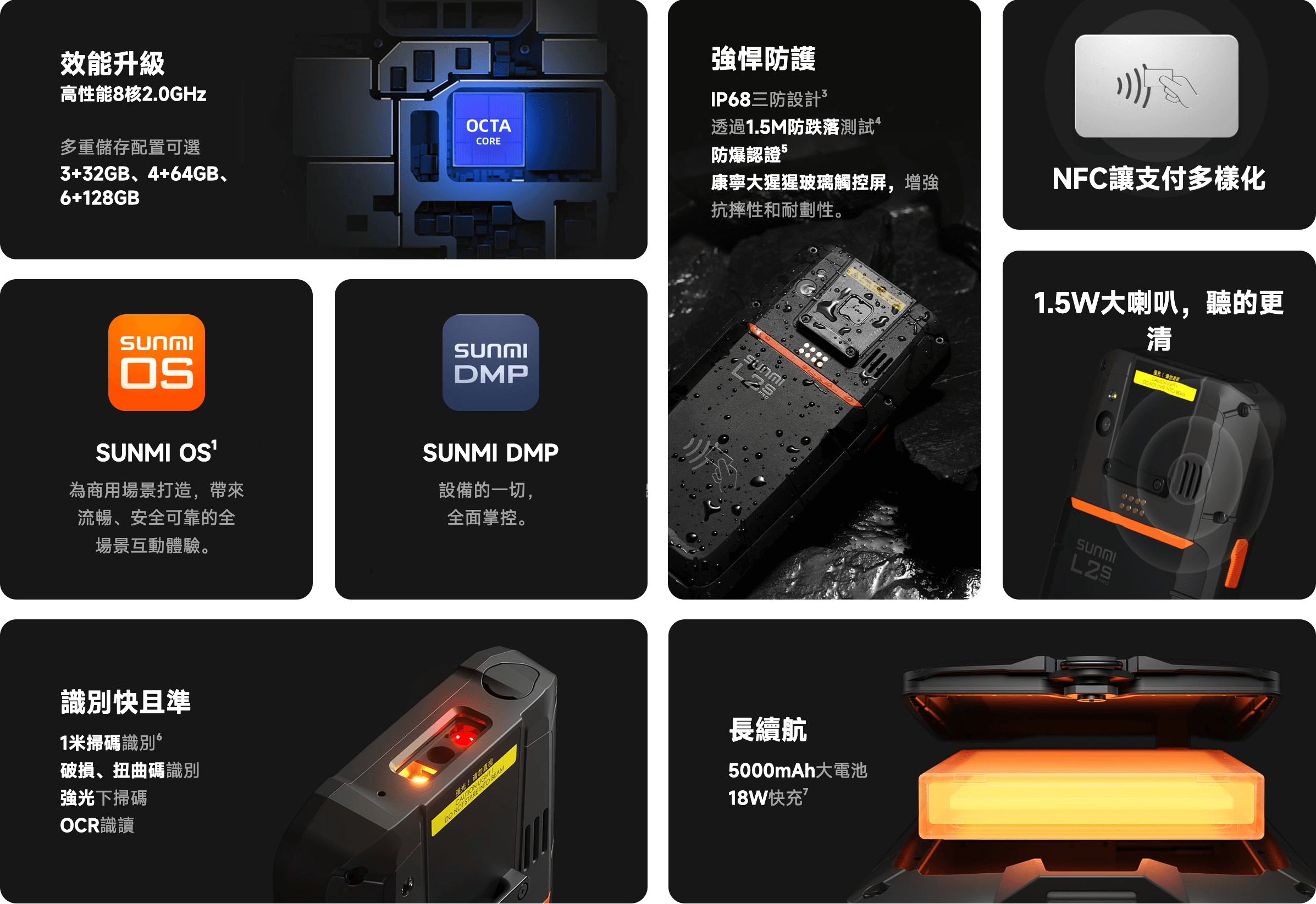 可拆卸5000mAhATL大電池帶來更強勁的續航力,滿足前線工作人員頻繁操作,持續使用。