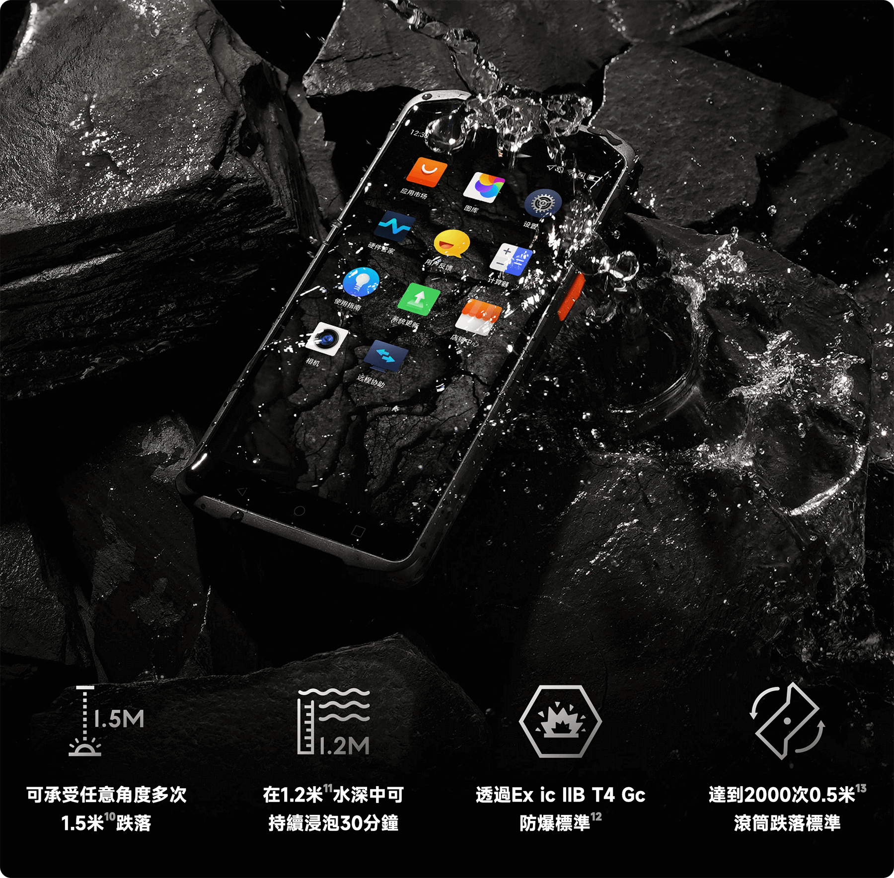 防護等級高達IP68,可以防止外物及粉塵進入機身,即使把設備沉浸在1.2米水中30分鐘,
